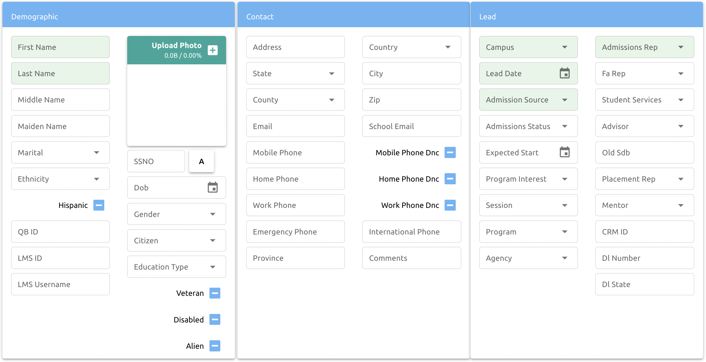 To review and process Lead Applications submitted via the Lead Application Form, navigate to: Admissions โ Main โ Import Lead Application