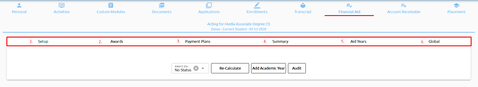 The Financial Aid tab contains everything related to a student's aid β from packaging to payment plans.